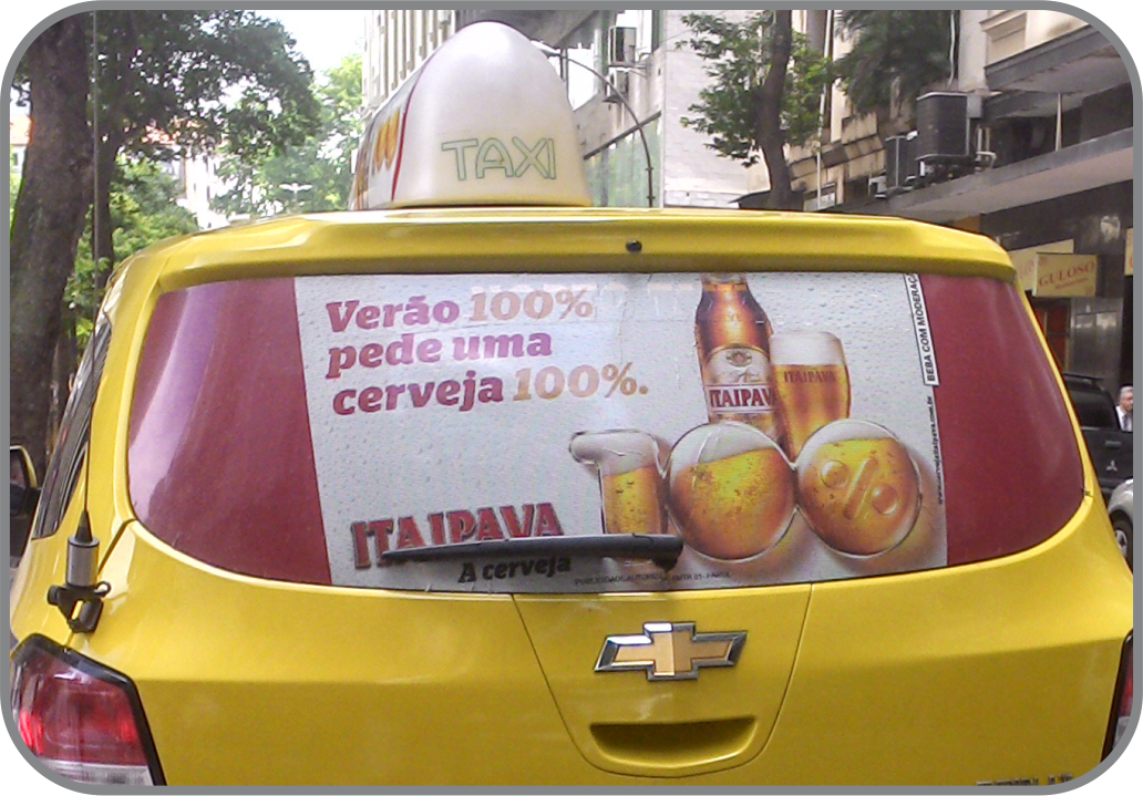 Já no clima da estação a cerveja 100% volta a ganhar as ruas nos táxis da Farol. Reforçando o posicionamento com a campanha “Verão 100% pede uma cerveja 100%”, a campanha vem propondo reforçar a qualidade do produto com o tradicional bom humor brasileiro.